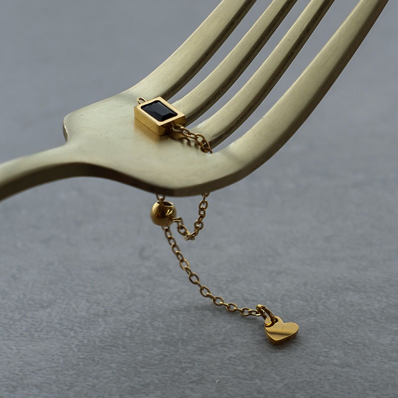 華奢なチェーンにスクエア型のストーンと、ハートモチーフをセットした大人可愛いデザイン。