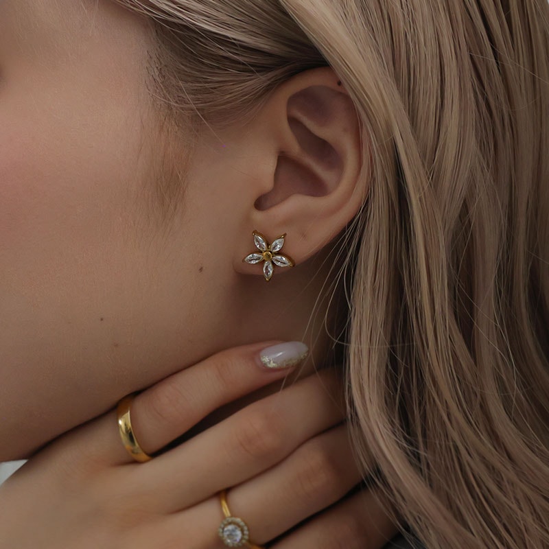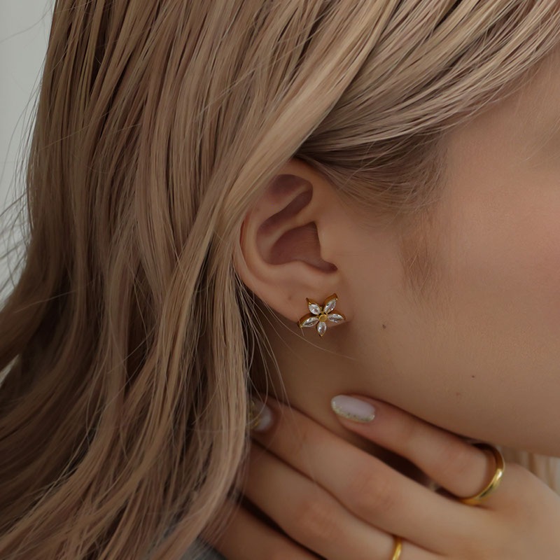 煌めくキュービックジルコニアをお花の形にセットした上品で華やかなデザイン。