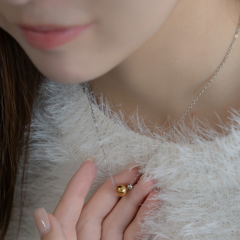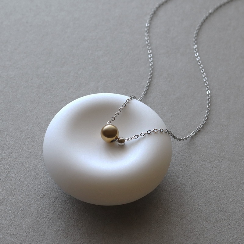 柔らかな光沢感が美しいゴールドのメタルボールに、控えめサイズのシルバーボールをさりげなく添えた洗練されたデザイン。