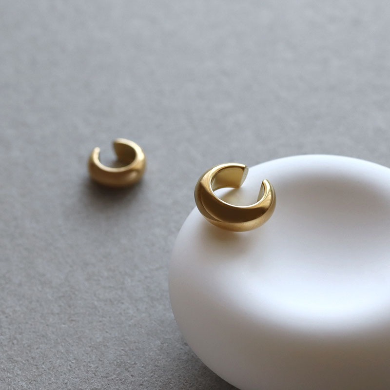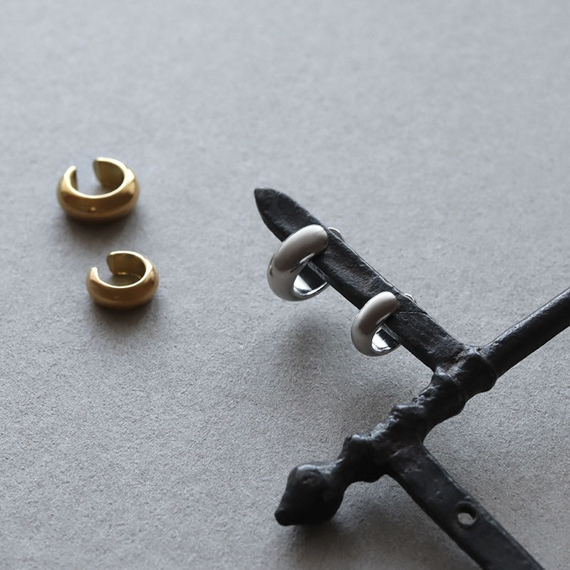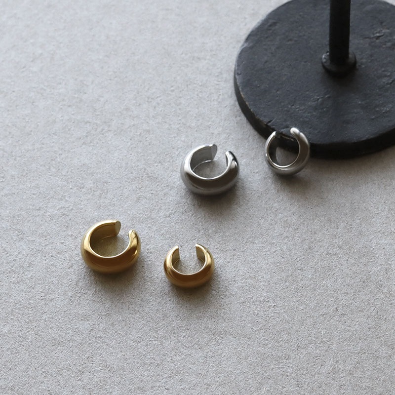 ぷっくりとした丸みのあるフォルムと艶やかなメタルの質感が耳元に馴染みやすい甲丸リング。