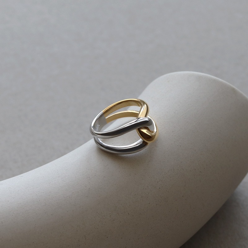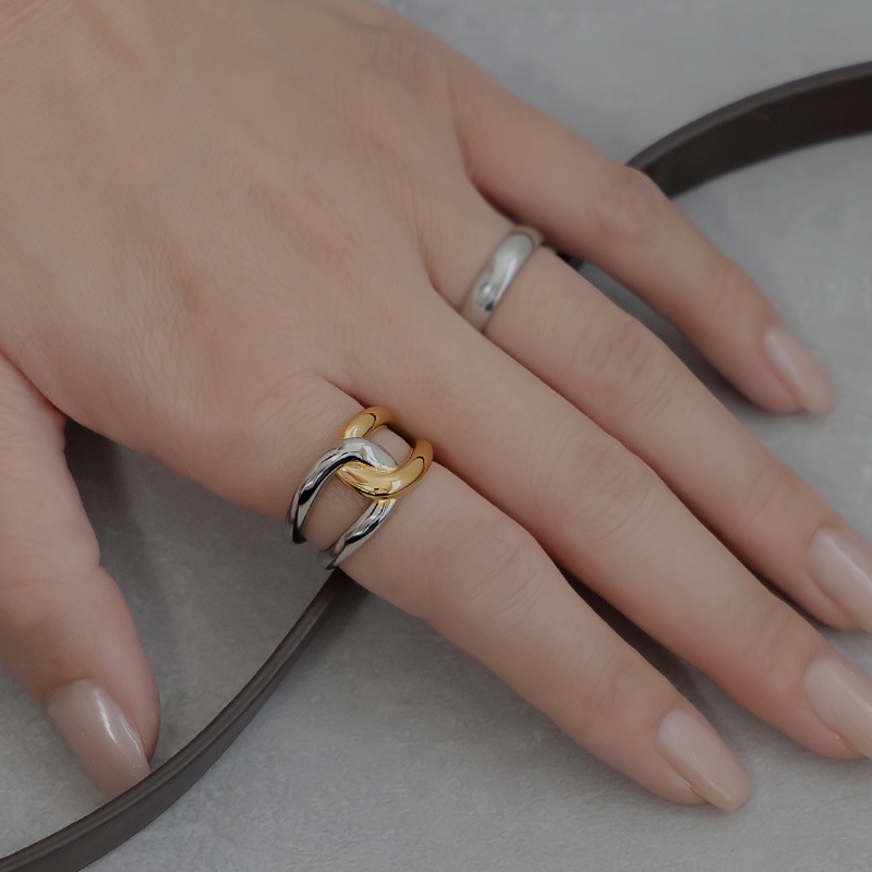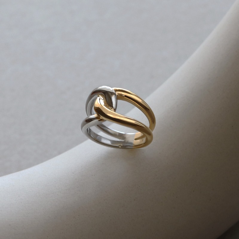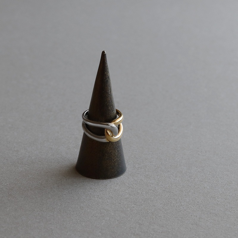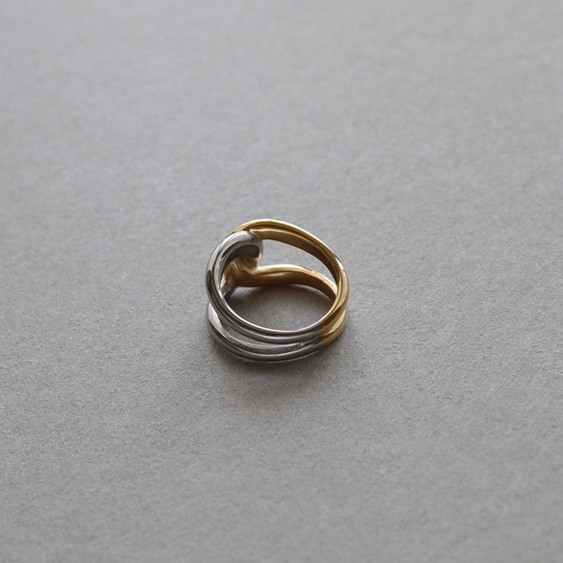 メタルの艶感が活きる緩やかな曲線で交わるゴールドとシルバーのオーバークロスデザイン。