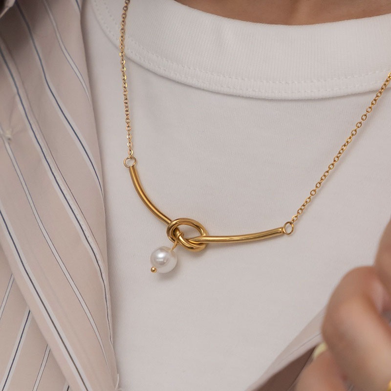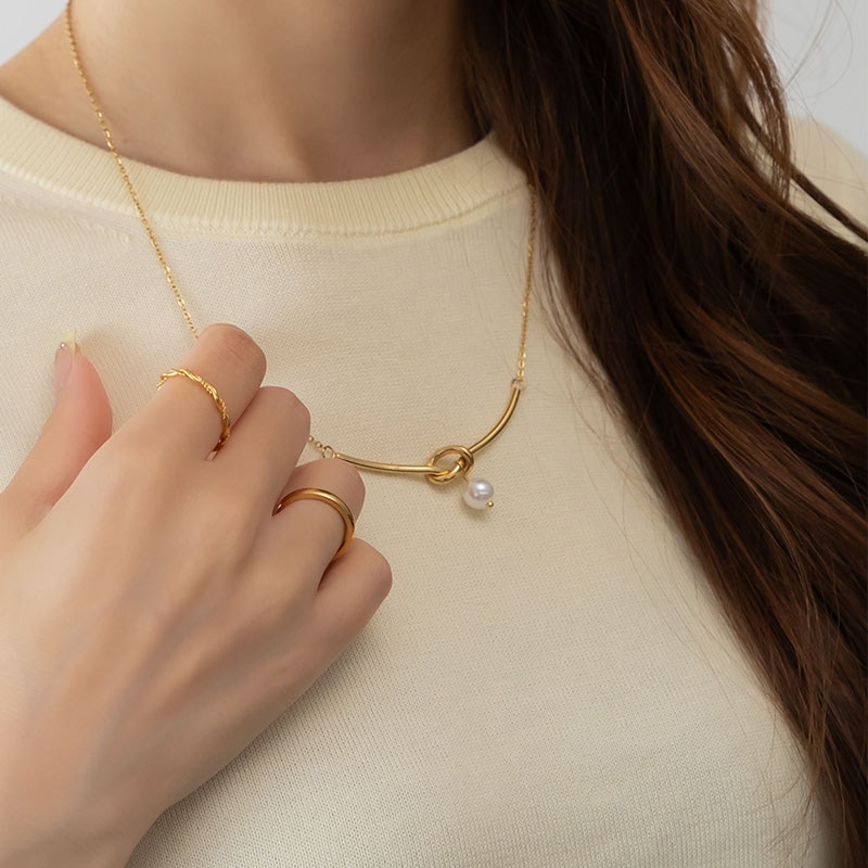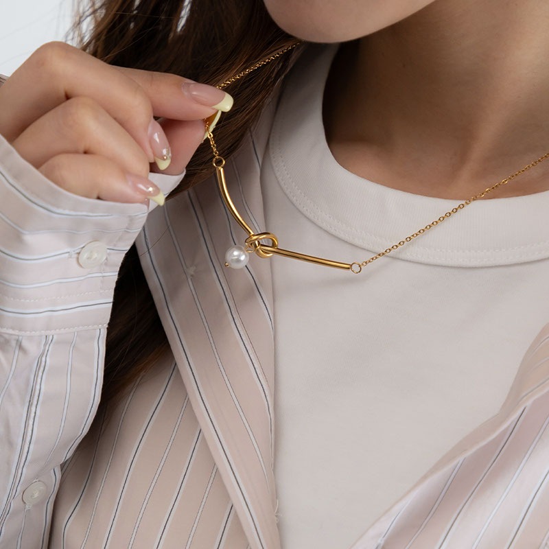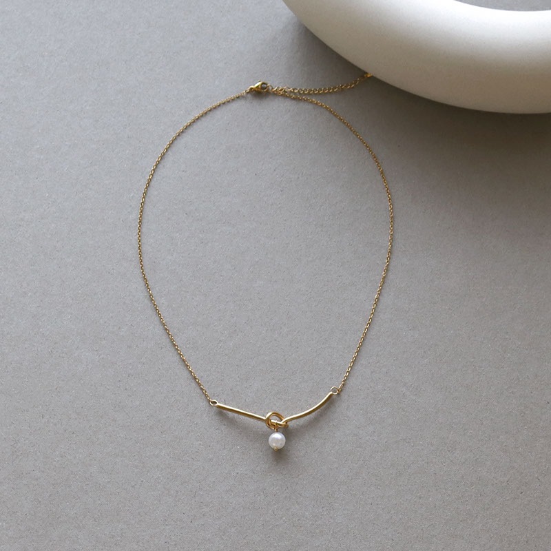 上品なゴールドカラーと揺れる一粒パールが胸元を華やかに演出し、コーデにアクセントを与えてくれます。