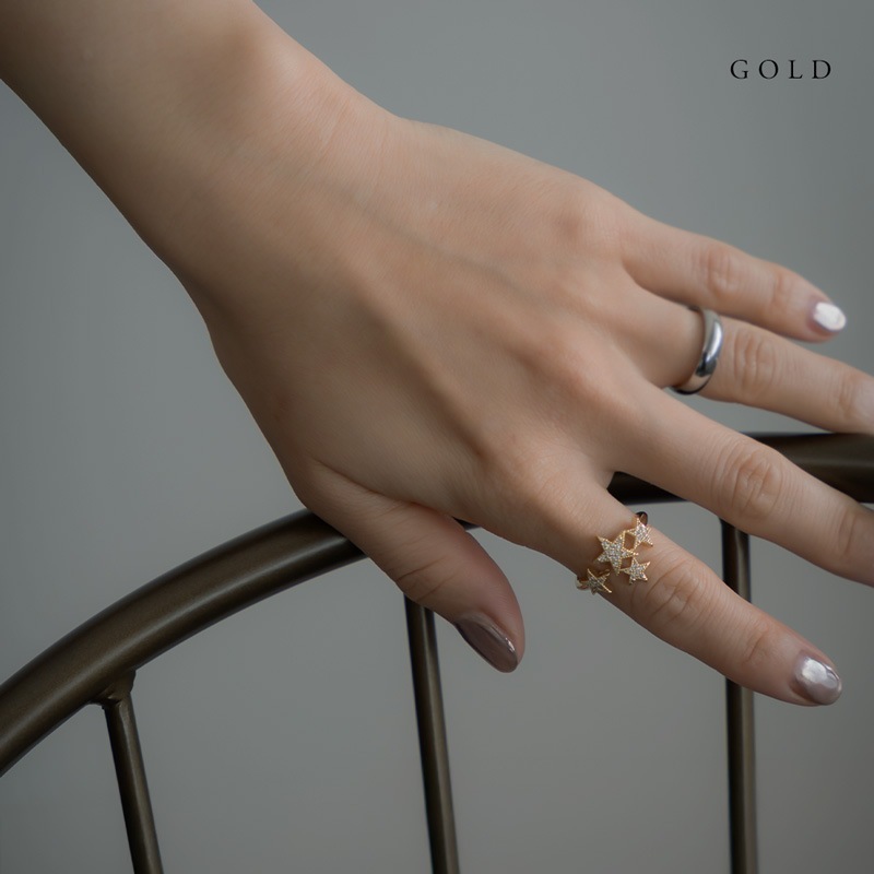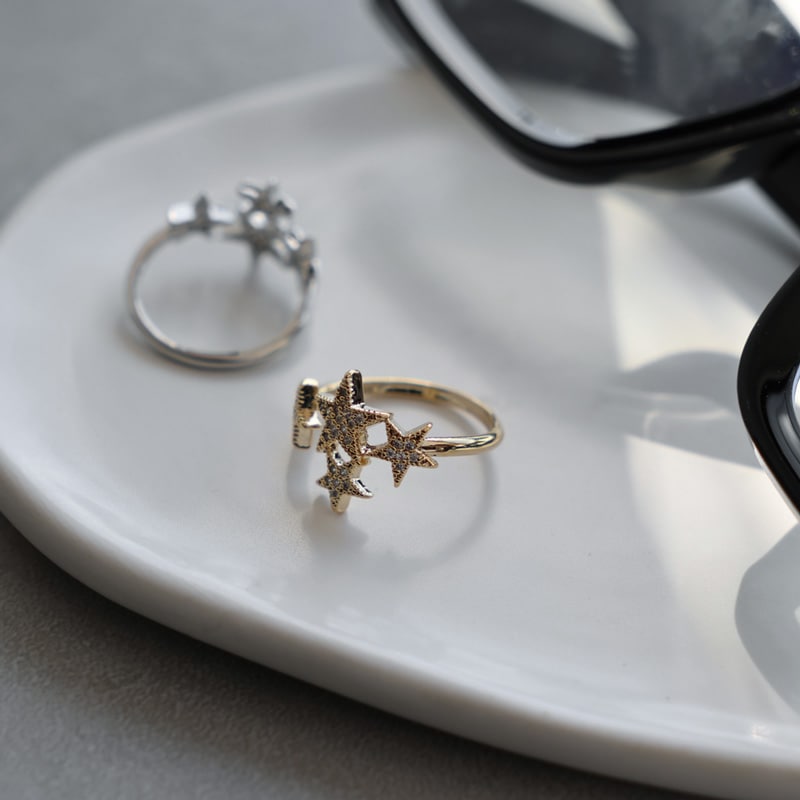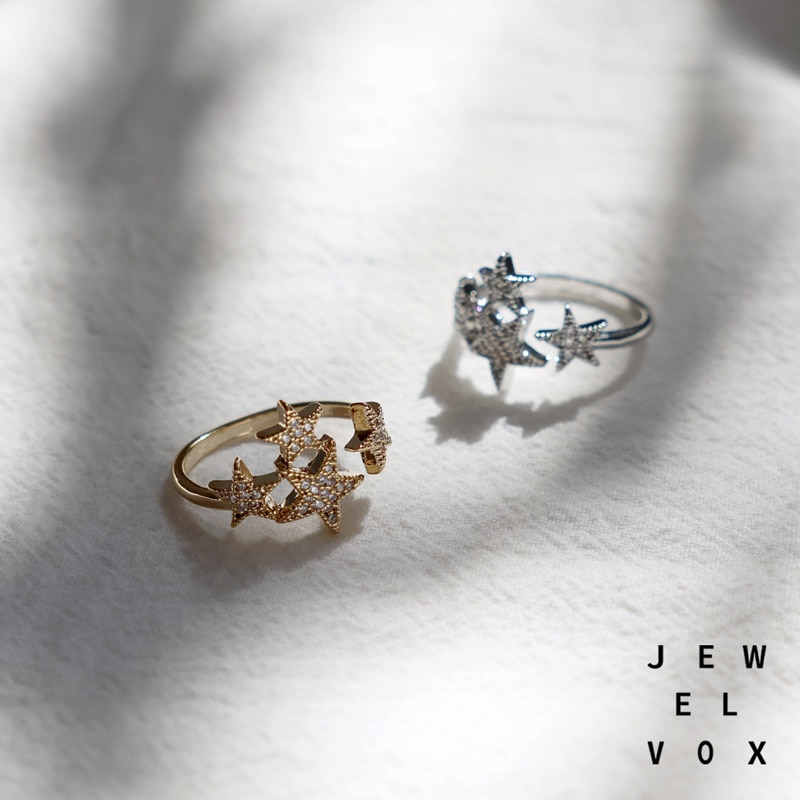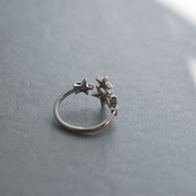 2種類の大きさのスターモチーフにストーンが煌めくリングです。