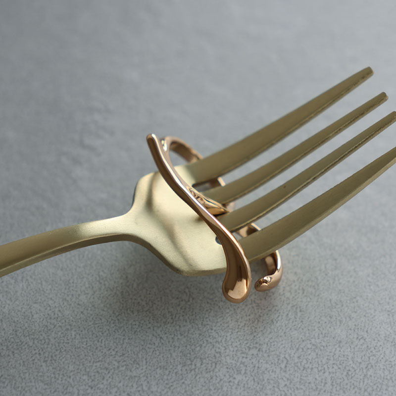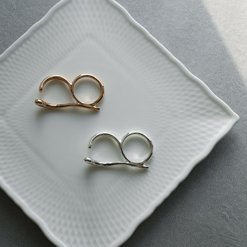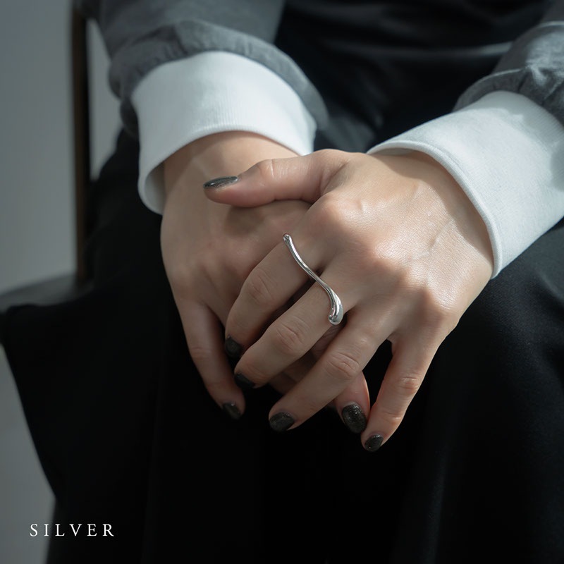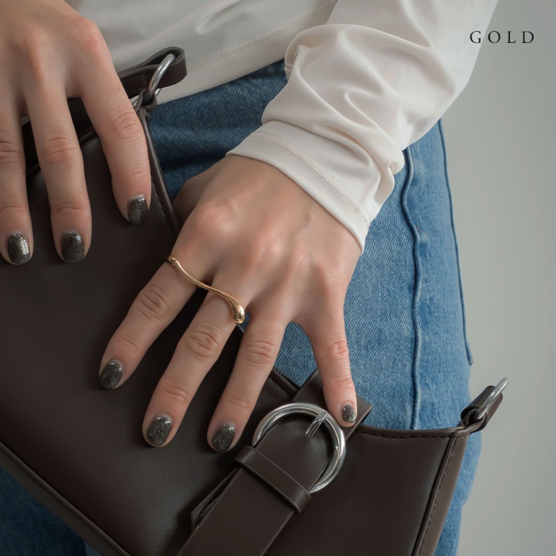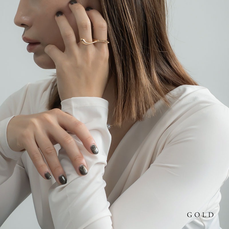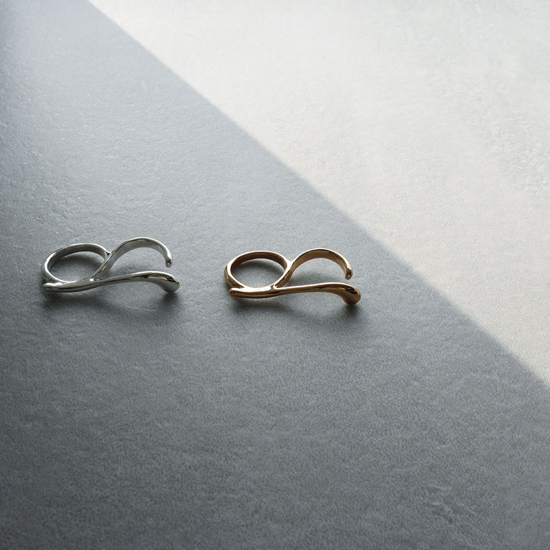 艶やかなメタルの質感が美しく、2本の指をはしごするようにデザインされたシルエットが