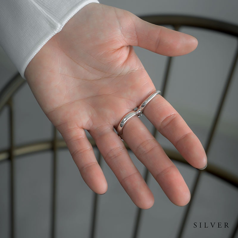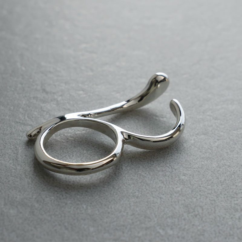 - 隣り合う2本の指にはめるツーフィンガーリングです。