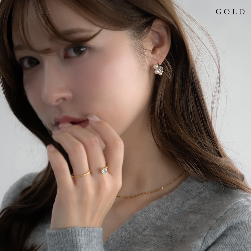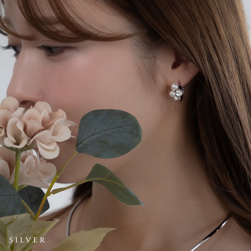 立体的なフォルムが耳元に華やかさを添え、上品な存在感を放ちます。