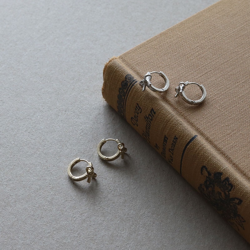 - 立体感のあるリボンモチーフが可愛らしいアクセントを添えるフープピアスです。