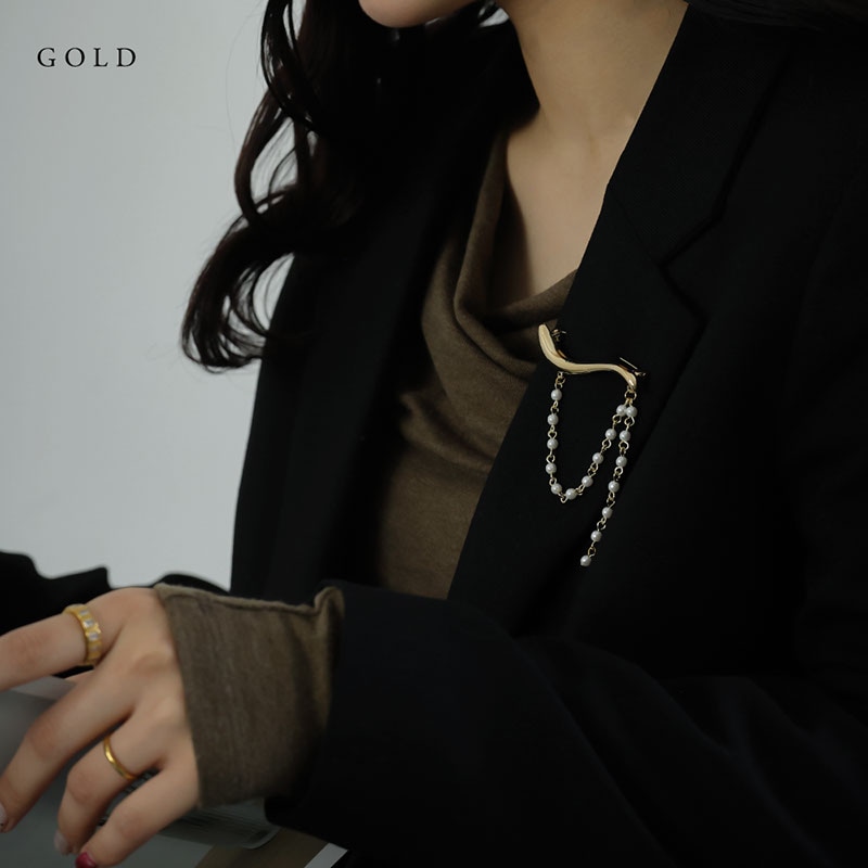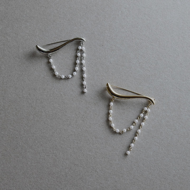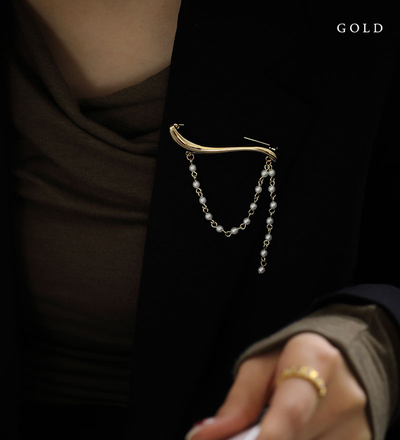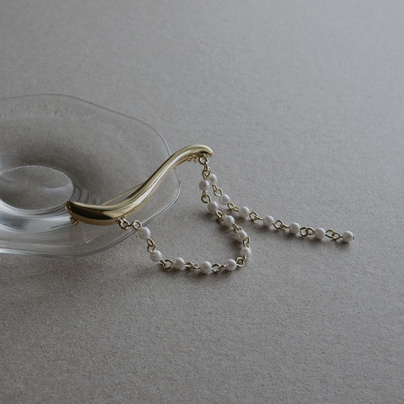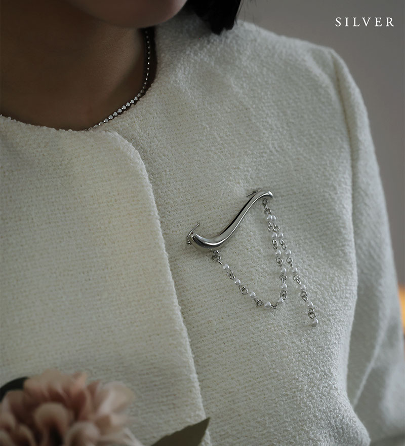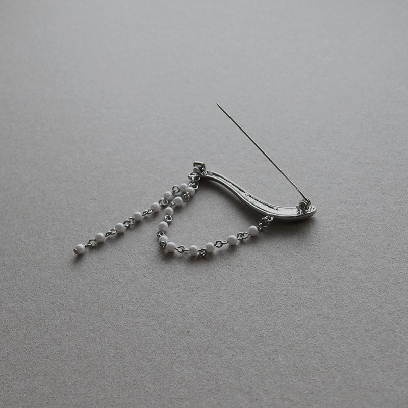 - 緩やかなウェーブラインを描くモチーフに、パールチェーンを合わせた動きのあるブローチです。