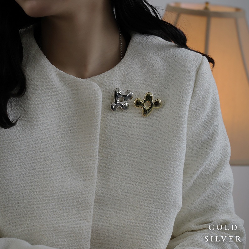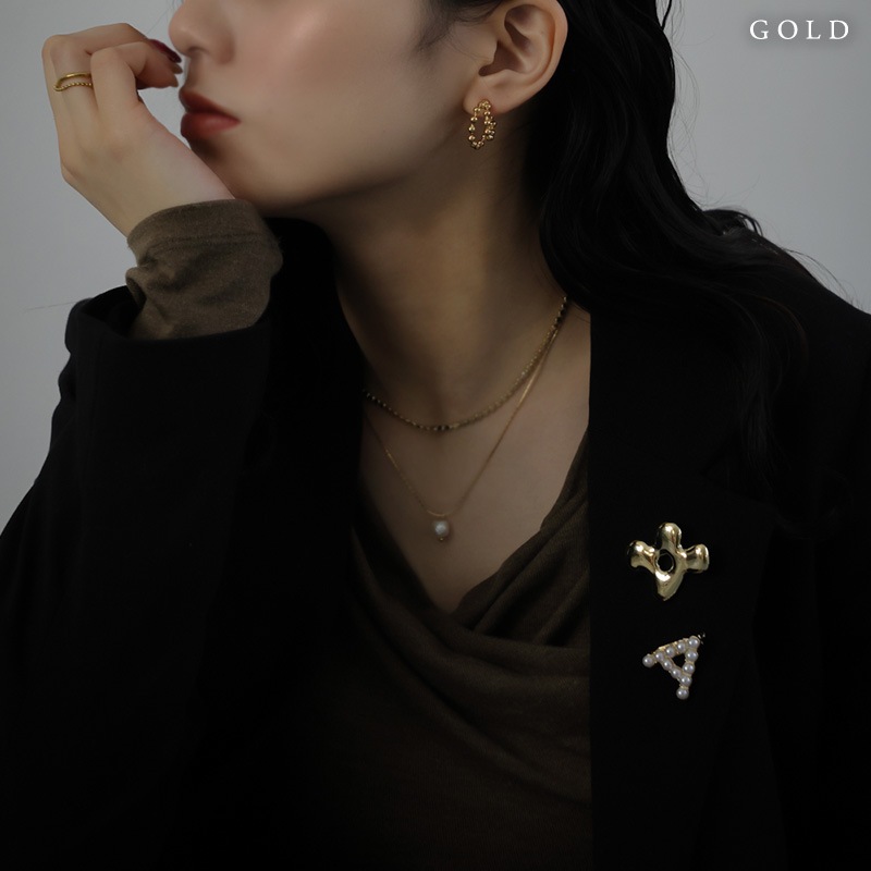 歪さのあるシルエットとぷっくりとしたメタルの質感が、甘さを抑えつつ大人の可愛らしさを演出します。