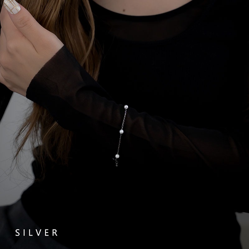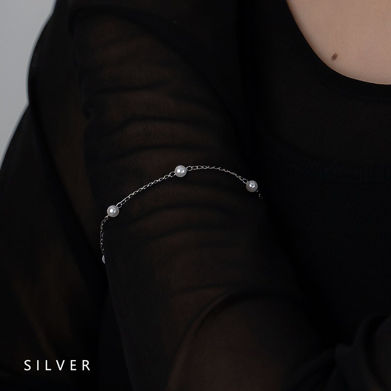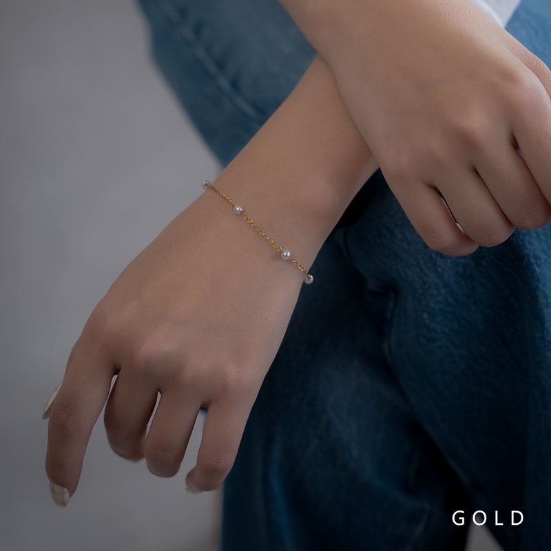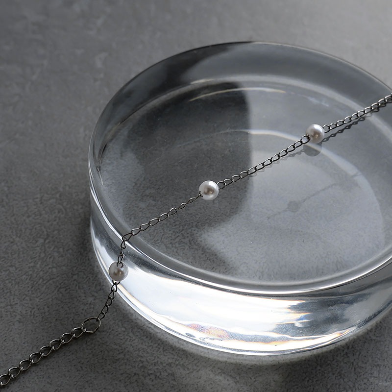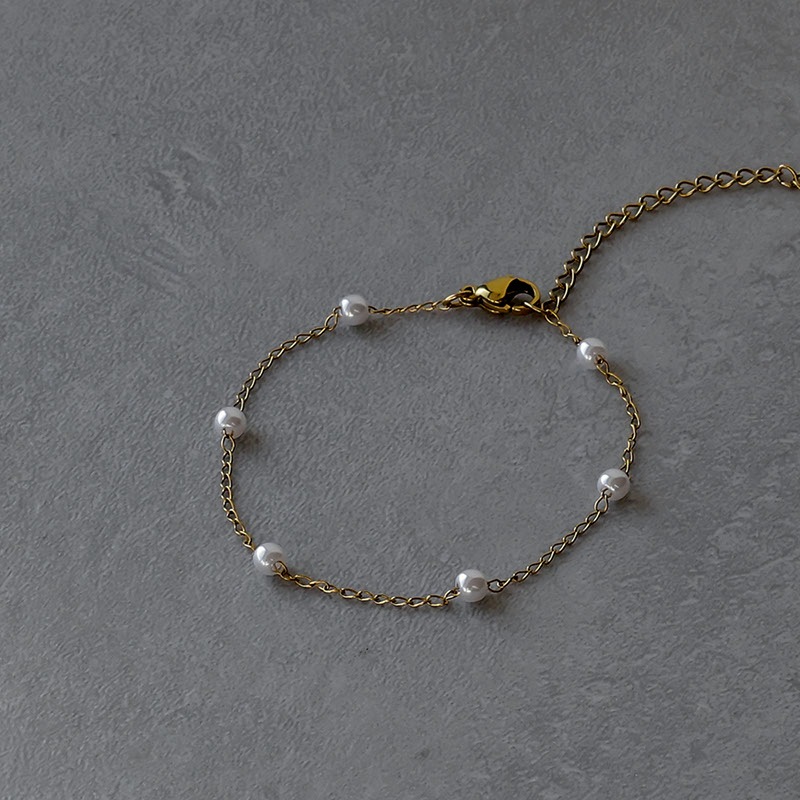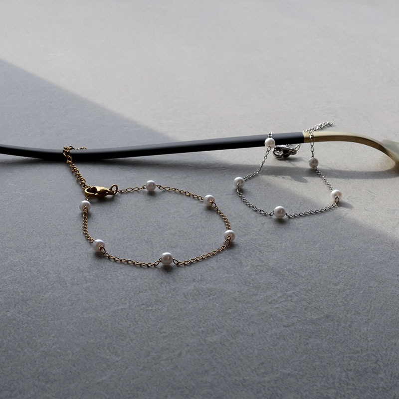 華奢なチェーンに、小粒のパールをセットしたシンプルで上品なデザイン。