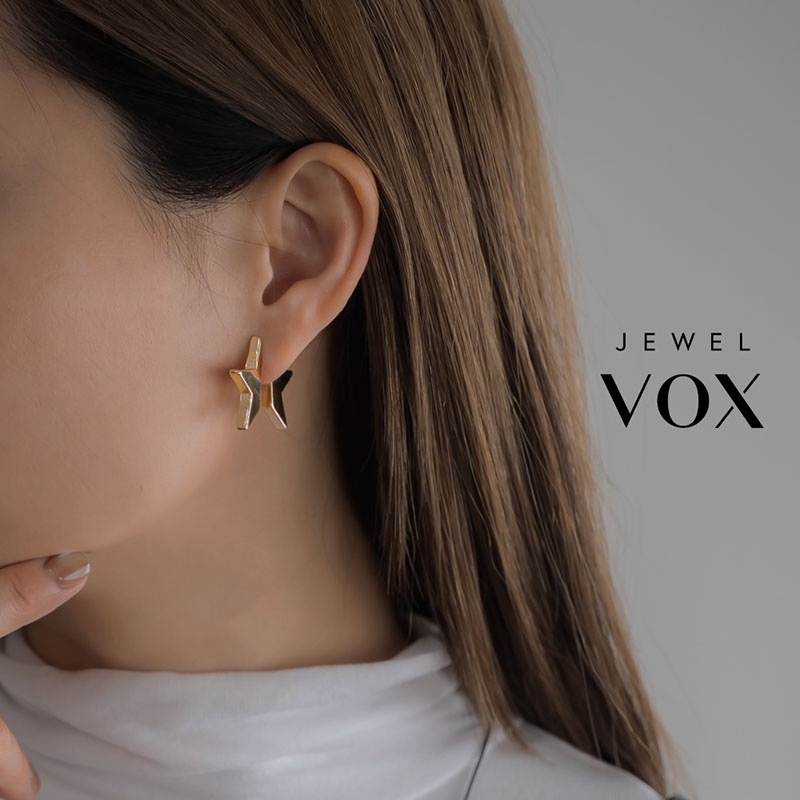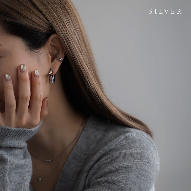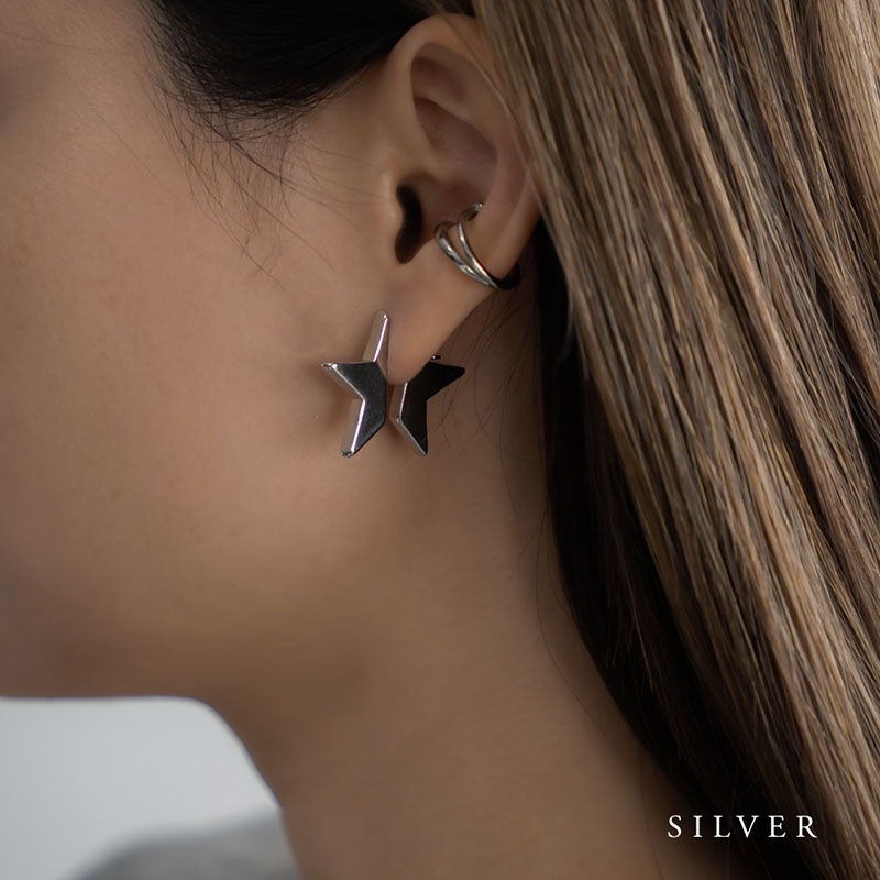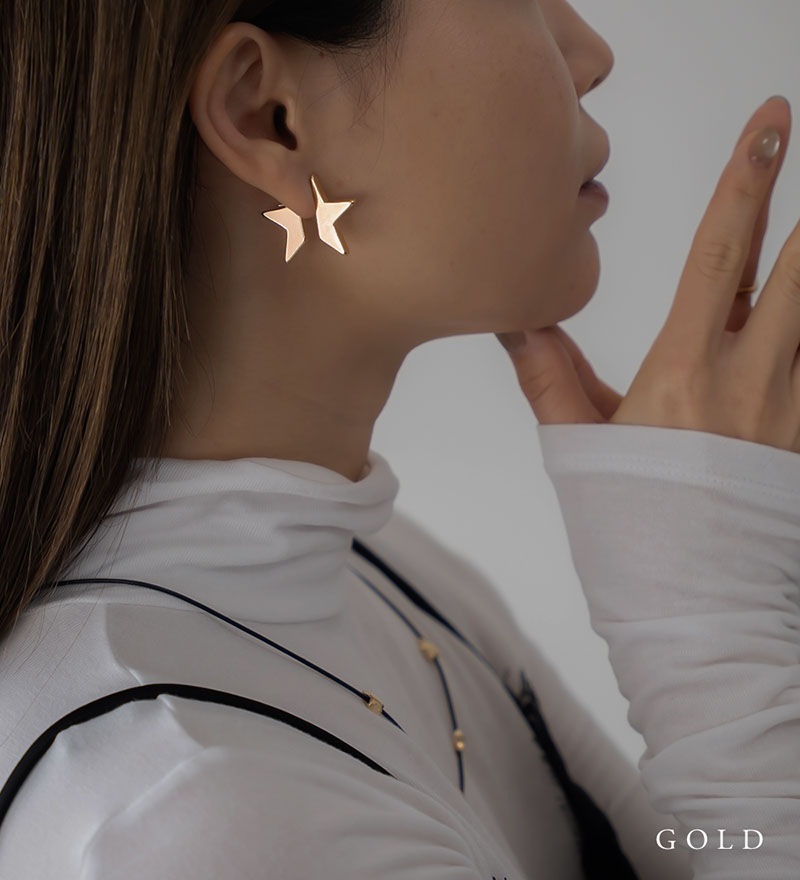 耳を挟むように前後に分かれて覗く星型モチーフで、角度によって様々な表情が楽しめるアーティスティックなデザイン。