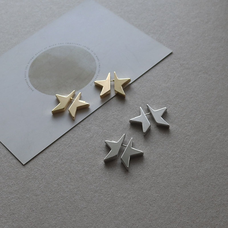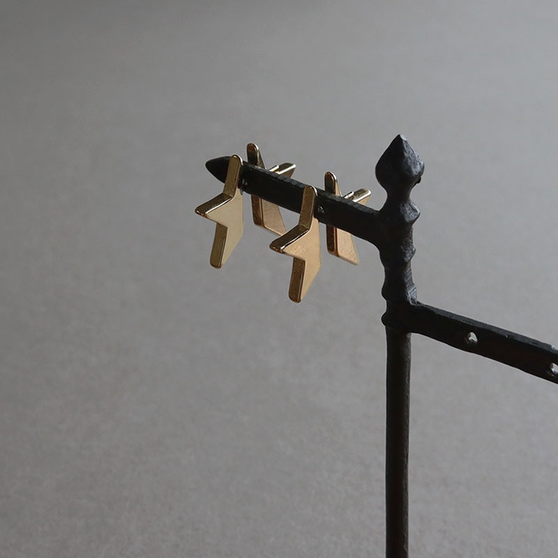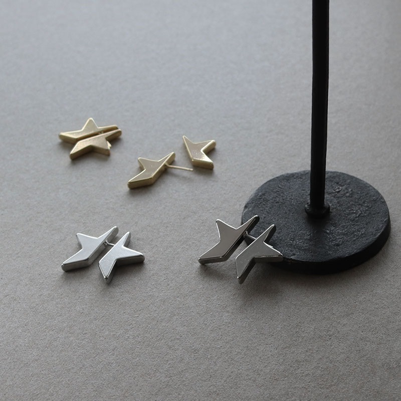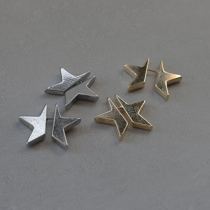 - 星型プレートを半分にセパレートした、耳元を立体的に彩るピアスです。