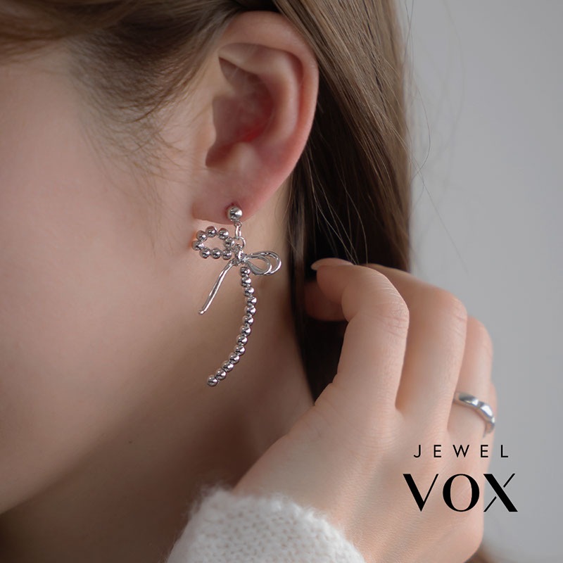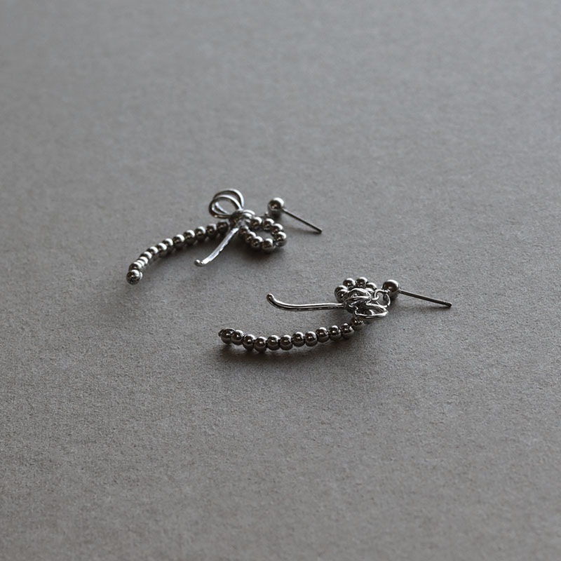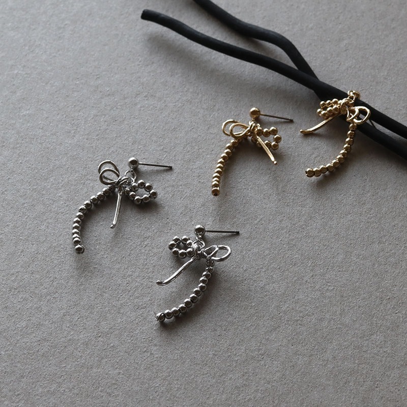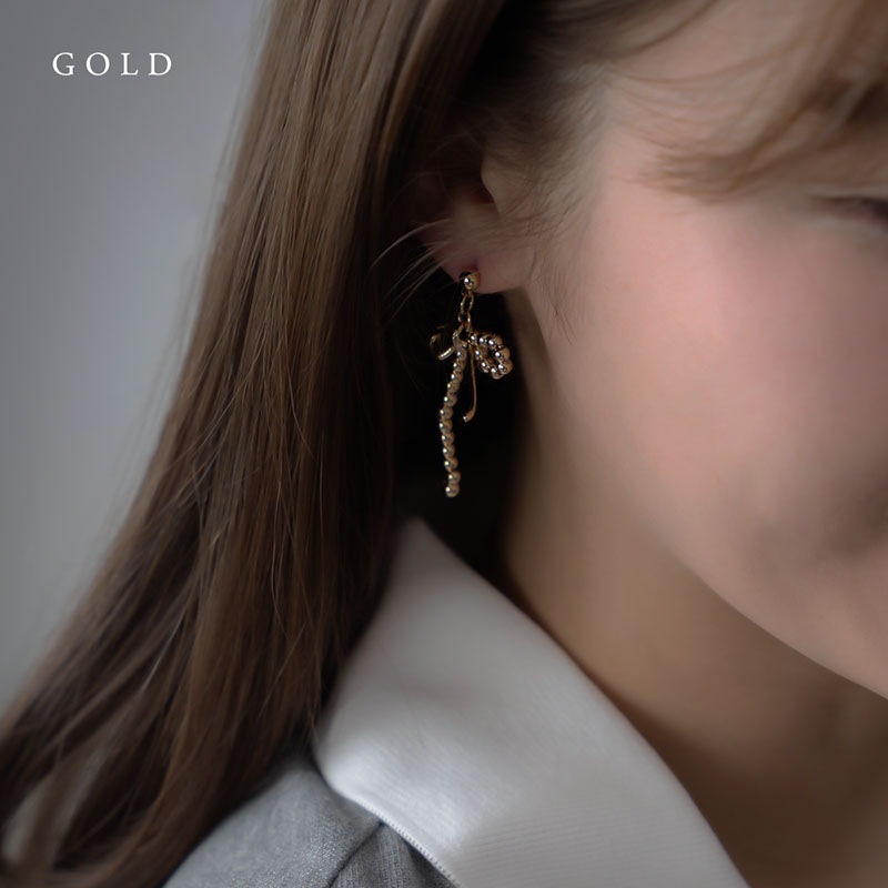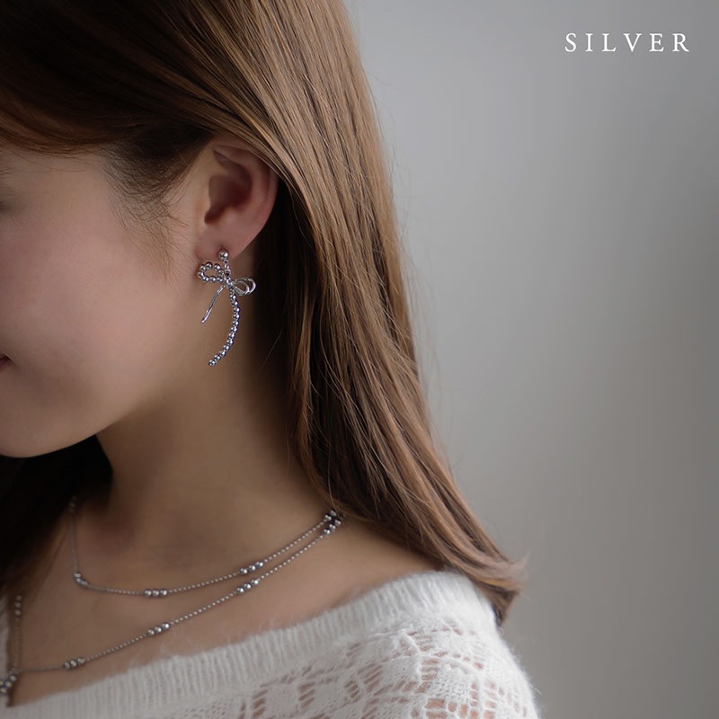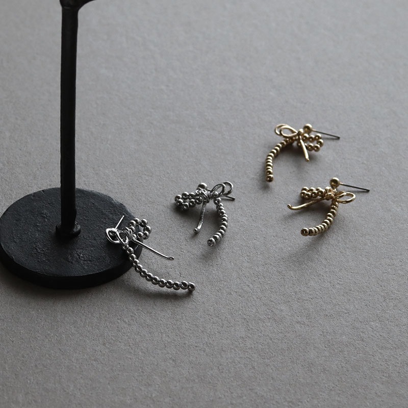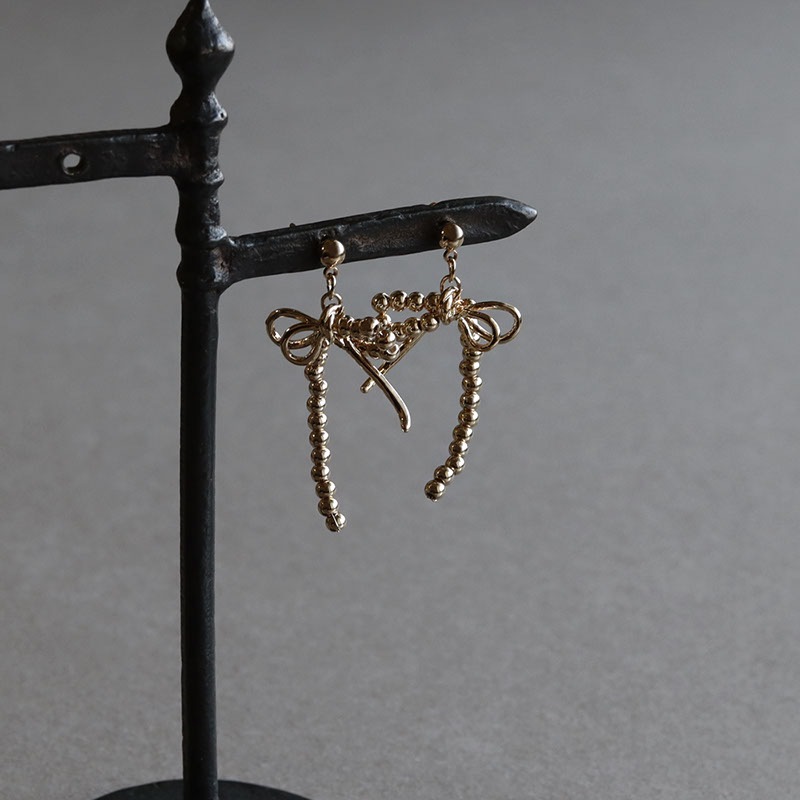 - 立体感のあるリボンモチーフが目を引くピアスです。