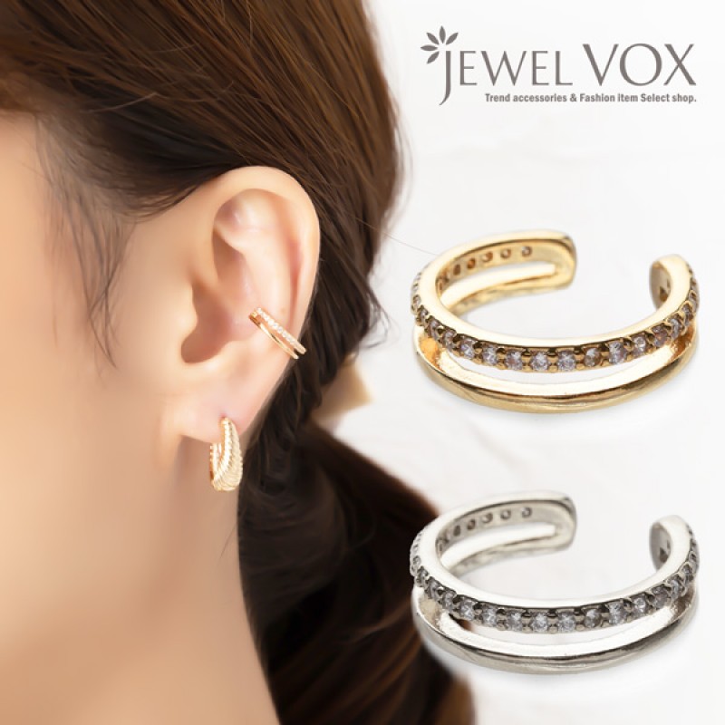 ニッケルフリー 片耳用 レイヤード風 パール 2連風 イヤーカフ